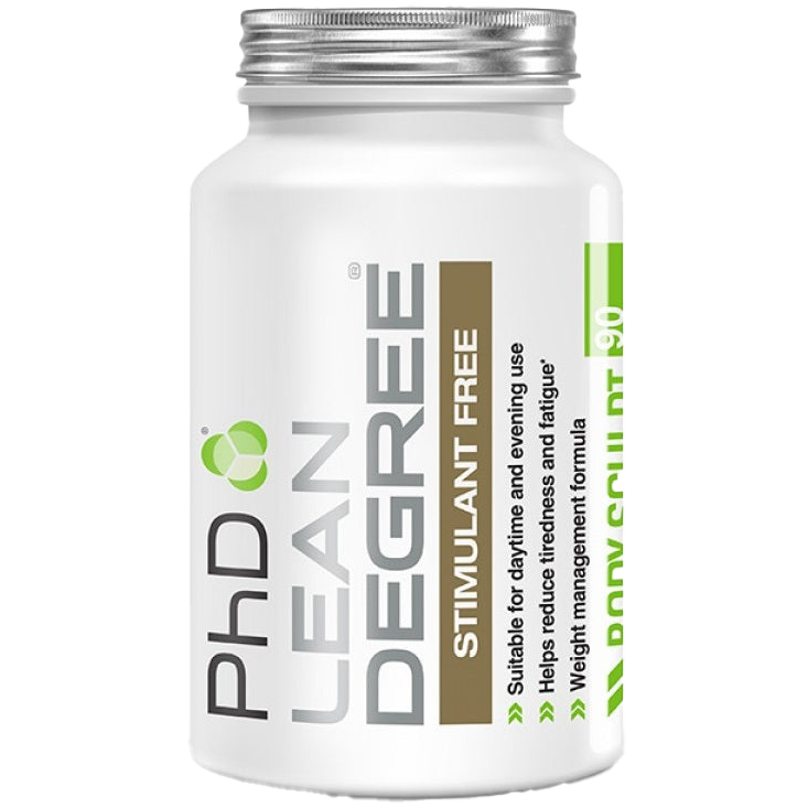 Introducing the revolutionary PhD Lean Degree Stimulant Free capsulesâthe first-ever stimulant-free weight loss ingredient stack designed to support your weight management goals without the unsettling effects of stimulants. This unique formulation combines potent herbal extracts, including green tea extract, L-Carnitine, and L-Tyrosine, making it suitable for consumption at any time of day, including in the evening. Enhanced with vitamin B5, it assists in reducing tiredness and fatigue, making it the perfect complement to your rigorous exercise and nutrition routines.Lean Degree Stimulant Free Benefits: