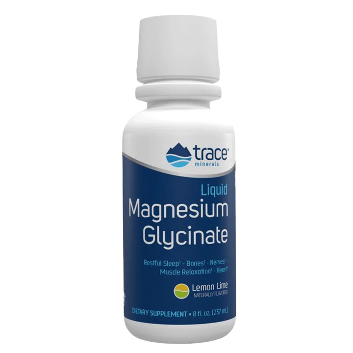 Trace Minerals Liquid Magnesiumglycinate in a refreshing Lemon Lime flavor offers more than just hydration; itâs an essential supplement for those looking to enhance their wellness routine. Each 237 ml bottle provides a potent form of magnesium that helps to support healthy/natural sleep patterns while also promoting a calming effect on the muscles.