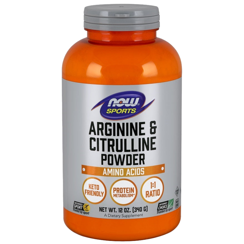 NOW Foods Arginine & Citrulline - 340g offers a powerful blend of L-Arginine and L-Citrulline, essential amino acids crucial for your bodyâs protein metabolism and muscle health. These ingredients work synergistically to promote muscle recovery, enhancing your workout performance and overall wellbeing.