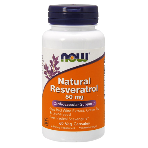 NOW Foods Natural Resveratrol with Red Wine Extract, Green Tea & Grape Seed, 50mg - 60 vcaps