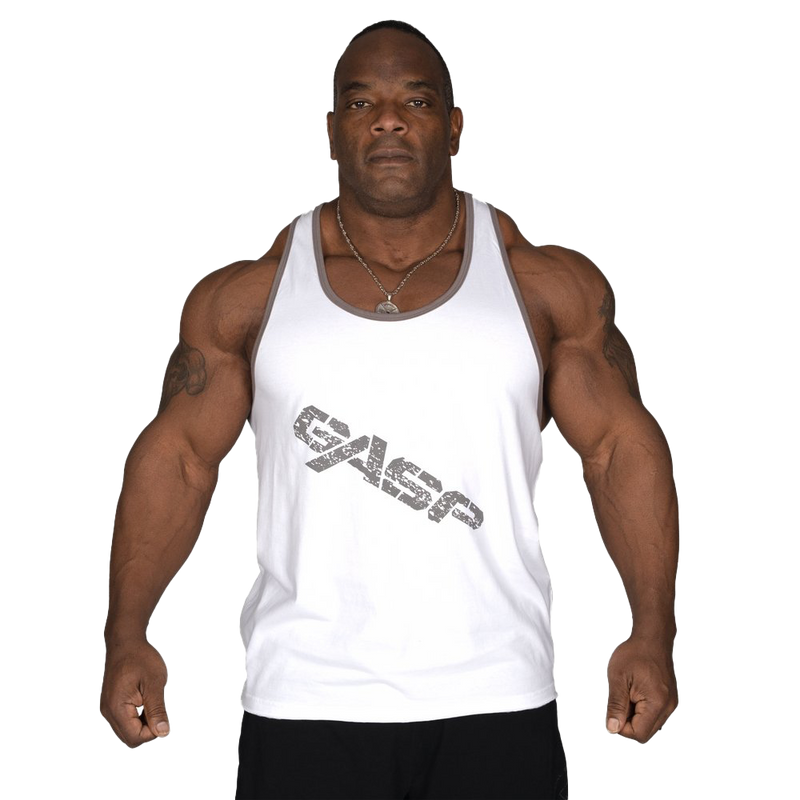 GASP Vintage T-Back - White stands as a quintessential choice for the modern fitness enthusiast. Tailored from 100% soft jersey cotton, this vest not only ensures superior breathability but also delivers exceptional comfort, particularly during intense workouts. The legendary cut-out design flaunting the iconic âGâ logo harmonizes style with functionality, featuring a contrasting material at the back for added flair.