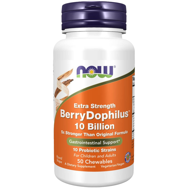Enhance your digestive wellness with NOW Foods Extra Strength BerryDophilus. This innovative formula is designed to provide five times the strength compared to the original version, offering robust support for your gut microbiome. Enjoy the multitude of benefits that come from a balanced digestive system.