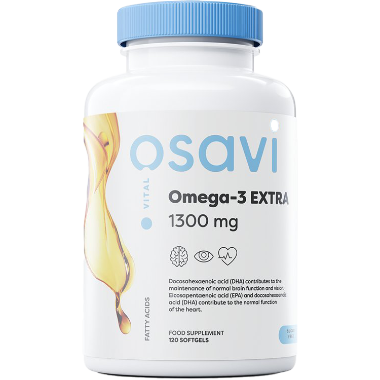 Reasons to choose Osavi Omega-3 EXTRA 1300 mg: - Among the highest available omega-3 dosages for superior health support. - Committed to sustainability, our fish oils are certified by the Friend of the Sea initiative, aligning with environmentally responsible practices. - Provides a simple solution for enhancing metabolic health while ensuring a delightful taste. - Our packaging is eco-friendly, made with BioPET that contains 30% plant-based plastic derived from sugar cane.