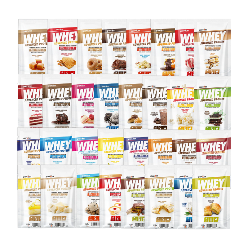 - Discover the ultimate taste experience with a full collection of 32 Per4m Whey Protein flavours in one complete bundle.
