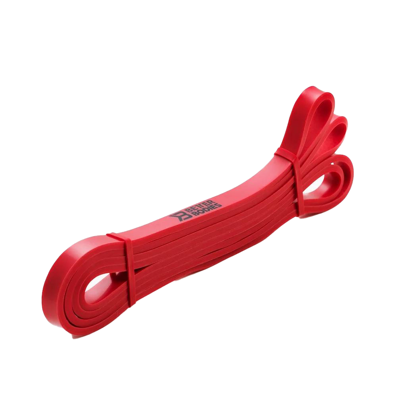 The Better Bodies Resistance Band - Red Light Resistance is your ultimate fitness companion, designed to enhance your strength training without the need for cumbersome dumbbells or bars. This elastic resistance band provides an effective, space-saving solution to add weight to your workouts, allowing you to perform a wide range of exercises with ease.