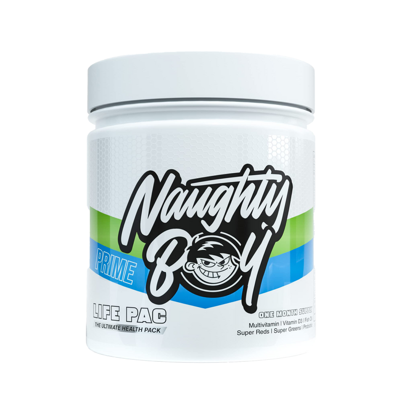 Naughty Boy Prime Life Pac 30 Servings is your all-in-one daily health pack designed to provide comprehensive nutritional support. Each convenient packet includes highly effective multivitamins, minerals, Omega 3, super greens, super reds, and Vitamin D3 tailored to enhance your overall well-being.