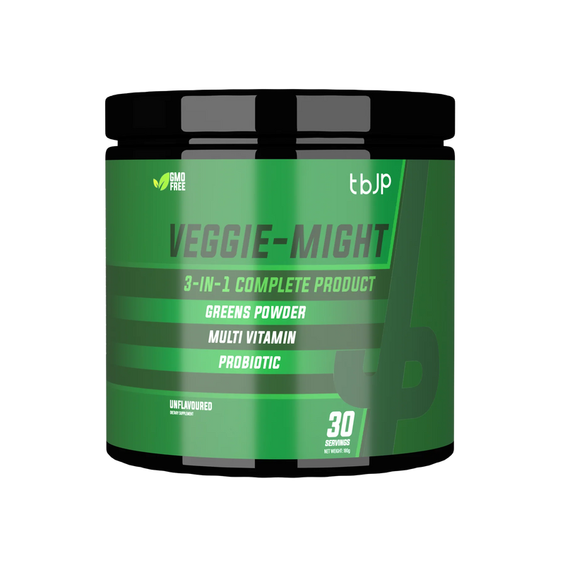 Trained By JP Veggie Might 180g Unflavored is a dynamic 3-in-1 supplement that combines greens, multivitamins, and probiotics to offer a comprehensive nutritional boost. This supplement is designed to fill the gap for those who find it challenging to consume adequate vegetables, especially during busy lifestyles or offseason training periods.Benefits of Veggie Might