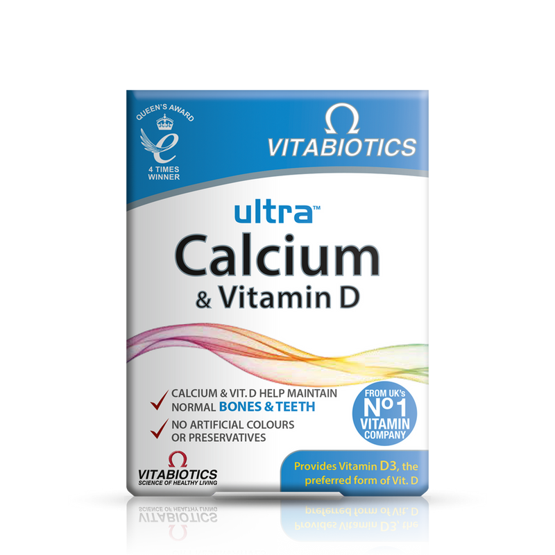 Vitabiotics' Ultra Calcium & Vitamin D Tablets are specifically designed to enhance your bone health and overall well-being. Formulated with a precise ratio of Calcium and Vitamin D, these tablets play a vital role in the maintenance of normal bone, teeth, and muscle functions, significantly reducing the risk of osteoporotic fractures, particularly in post-menopausal women.