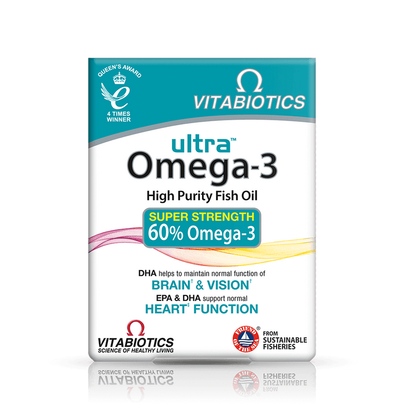 Experience the countless health benefits of Vitabiotics Ultra Omega 3 High Purity Fish Oil capsules, specially formulated to support your body’s needs. Each serving is enriched with over 60% Omega-3 fatty acids, including vital components DHA and EPA, known for their significant role in promoting heart and brain health.