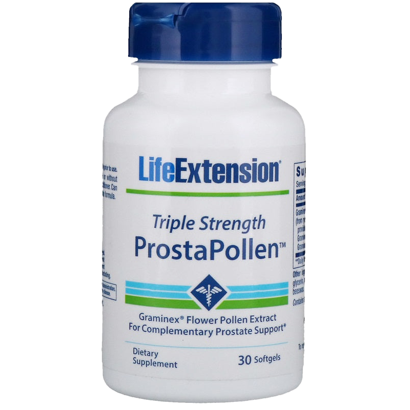 Life ExtensionProstaPollen Triple Strength - 30 softgelsFood supplement in softgels. Containing oilsNutrition FactsServing Size: 1 SoftgelServings Per Container: 30