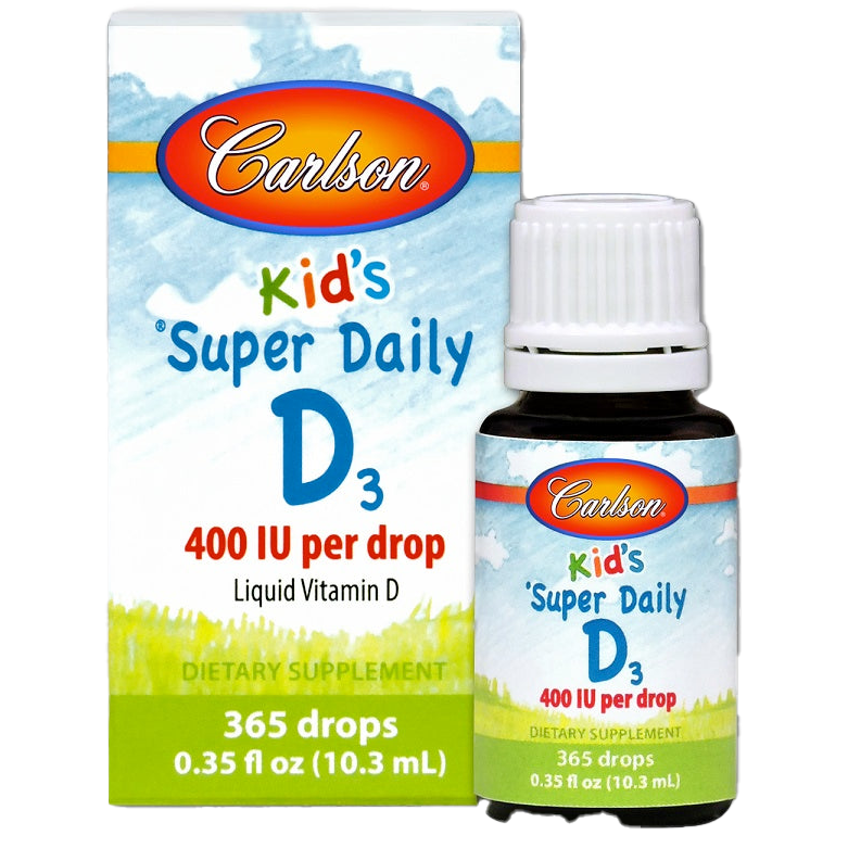 Carlson LabsKid's Super Daily D3, 400 IU - 10 ml.Food supplement in liquid form, containing vitamin D3Nutrition FactsServing Size: 1 Drop (0.028 ml)Servings Per Container: 365