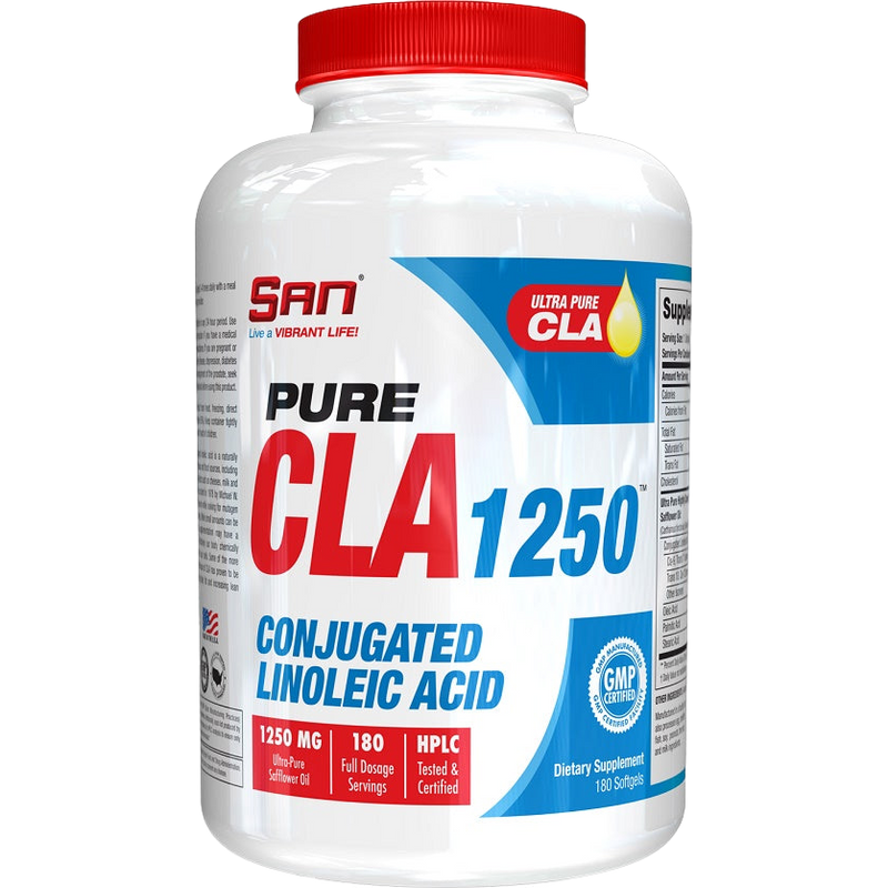 Introducing SAN Pure CLA 1250 - 180 Softgels, a premium dietary supplement designed to assist individuals in achieving their fitness and wellness goals. Formulated with Conjugated Linoleic Acid (CLA), this powerful fat-loss agent is particularly noted for its ability to: