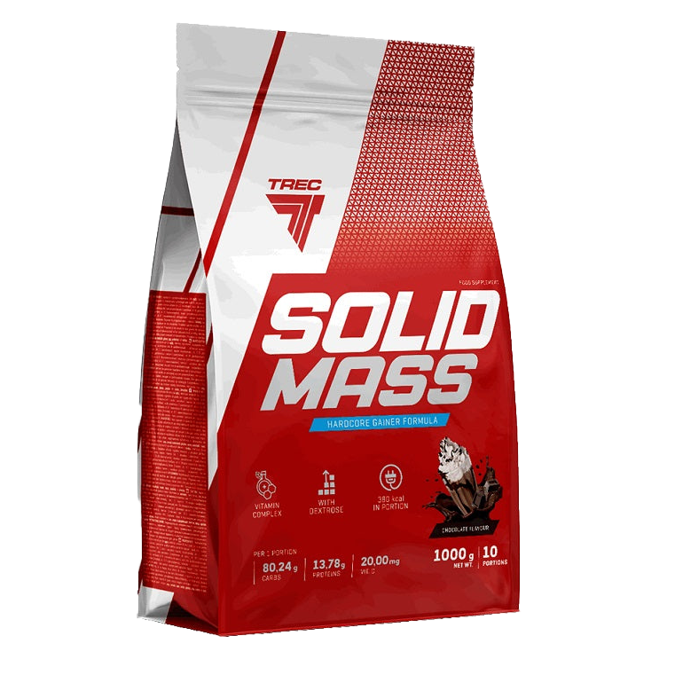 Trec NutritionSolid Mass, Chocolate - 1000gFood supplement in powder form containing protein sources, carbohydrate sources, vitamins, thickeners, sweeteners and flavourings.Nutrition FactsServing Size: 4 Scoops (100g)Servings Per Container: 10