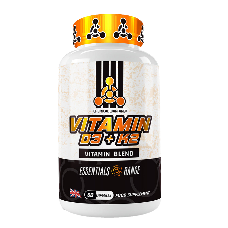 The Chemical Warfare Vitamin D3 & K2 60 Caps is a premium dietary supplement designed to promote optimal health and wellness. Vitamin D3 is crucial from infancy through adulthood, playing a key role in calcium absorption, improving bone density, and supporting overall skeletal health. Vitamin K2 complements D3 by helping to direct calcium to the bones while reducing the risk of arterial calcification, making these two vitamins a powerful combination for enhancing your overall health.