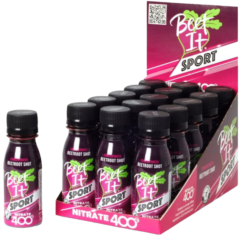 Beet It Sport Nitrate 400 Shots are meticulously crafted for athletes aiming for peak performance through natural dietary enhancement. Each 70ml shot encompasses a potent 400mg of dietary nitrate, derived solely from concentrated beetroot juice, equivalent to the nutrients found in six whole beets. This high-nitrate formulation is considered the leading choice in dietary nitrate supplementation, backed by extensive research and the endorsement of elite athletes for over a decade.