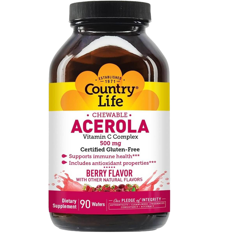 Country Life Chewable Acerola 500mg 90 Berry Flavour Wafers