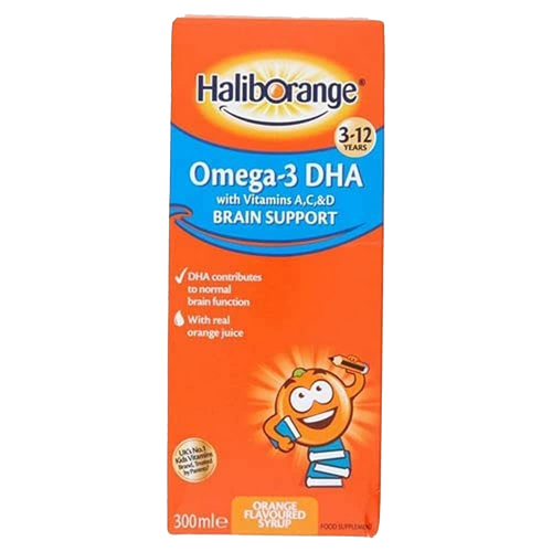 Haliborange Omega 3 DHA Brain Support Orange Flavoured Syrup 3-12 Years - 300ml
