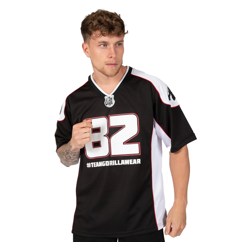 Gorilla Wear Athlete T-Shirt 2.0 - Black/White is more than just an apparel; it’s a statement of your athletic lifestyle! Tailored for those who embrace fitness, this t-shirt features the number 82 printed on it, marking the year Gorilla Wear was established. Its sleek design is enhanced by sporty vertical stripes on the sides, ensuring you stand out during your workouts or casual outings.