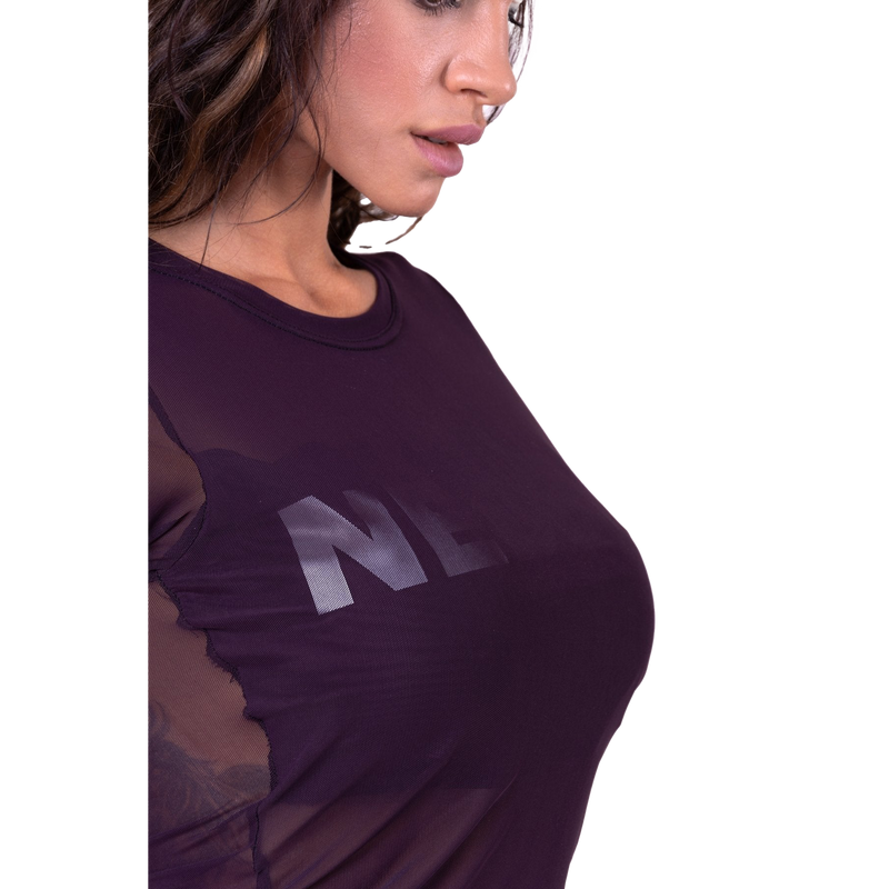 Introducing the Nebbia Flash Mesh T-Shirt 665 in a stunning burgundy, a stylish short-sleeve top designed to seamlessly blend fashion with fitness. Crafted from a unique combination of soft, breathable materials, this T-shirt guarantees a comfortable and flattering fit, allowing you to embrace your femininity while staying active.