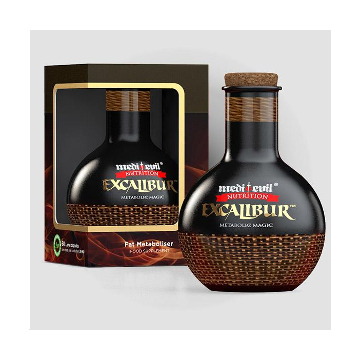 Medi-Evil Excalibur is not just a fat burnerâit's an advanced dietary supplement designed for those serious about achieving their fitness goals. With its powerful blend of thermogenic and hunger-suppressing technology, Excalibur aids in weight management while supporting mental clarity and focus, thanks to its nootropic benefits. Each super-sized capsule contains only 100% active natural ingredients, making it a clean choice for both vegetarians and vegans, and it meets the standards of various dietary restrictions.