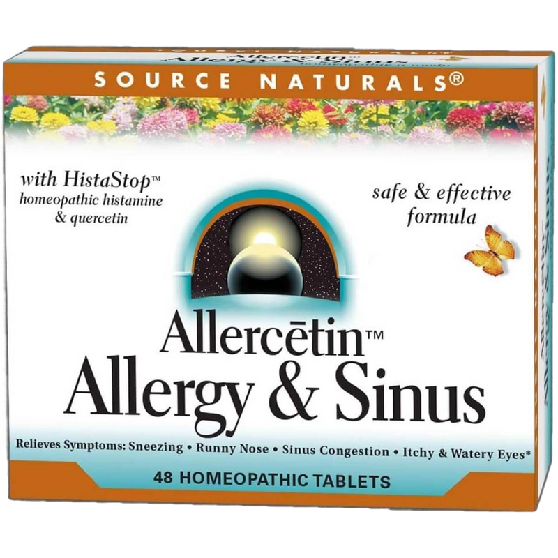 Source Naturals Allercetin Allergy & Sinus is an innovative, Bio-Aligned Formula crafted to provide natural relief from allergy symptoms. Harnessing the power of homeopathic remedies, Allercetin effectively supports various body systems linked to hay fever, including the respiratory system, sinuses, and mucous membranes. It works by promoting histamine inhibition, immune desensitization, and enhancing overall cellular energy.