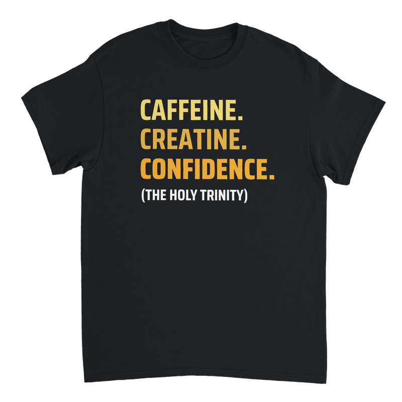 Kickstart your fitness journey with the Caffeine Creatine Confidence T-Shirt by My Supplement Shop. This heavyweight cotton tee boasts the iconic lifting mantra: "Caffeine. Creatine. Confidence. (The Holy Trinity)"āthe perfect motivation for dominating your workouts and life.