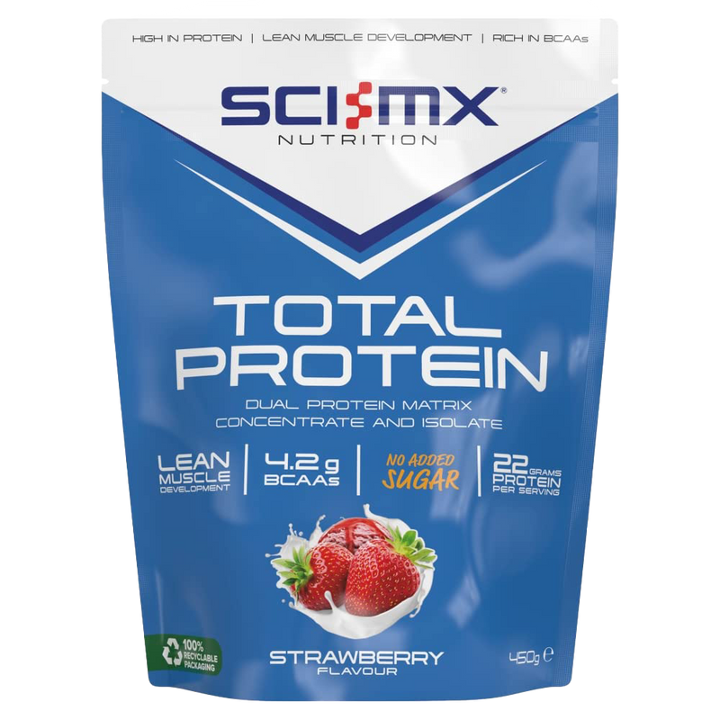 Sci-MX Total Protein 450g Strawberry is designed to enhance your daily nutrition effortlessly. With 22g of protein per serving, this supplement supports muscle recovery and growth, making it a perfect companion for fitness enthusiasts and athletes alike.