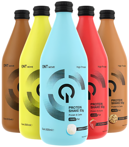 QNT Protein Shake Glass Bottle | 12 x 500 ml