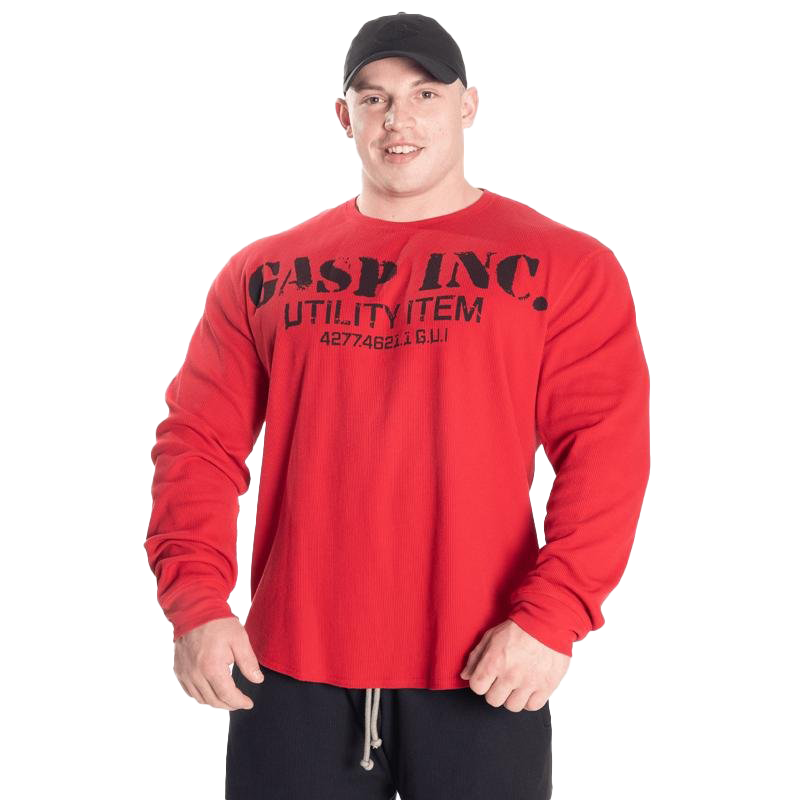 GASP Thermal Gym Sweater - Chilli Red is your ultimate workout companion, designed specifically for athletes and gym enthusiasts. This stylish yet functional sweater allows you to âcover upâ without overheating. Made from a lightweight and breathable thermal fabric, it ensures you stay comfortable even during intense training sessions.