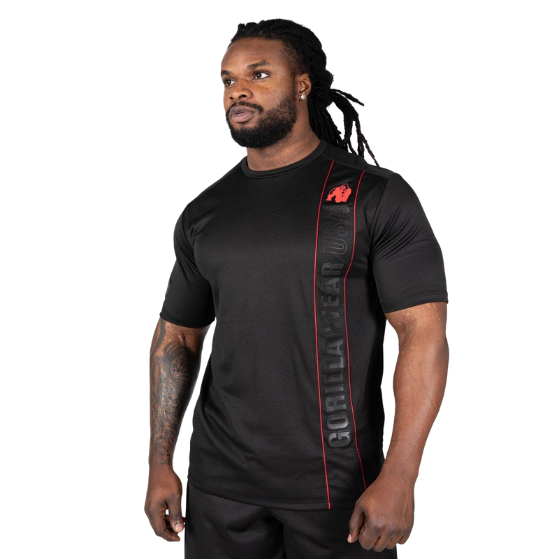 The Gorilla Wear Branson T-Shirt in Black/Red is the ultimate companion for serious athletes and fitness enthusiasts. Engineered for peak performance, this functional and lightweight t-shirt boasts cutting-edge sweat regulation and quick-dry technology, ensuring you stay dry and comfortable through your most intense workouts.
