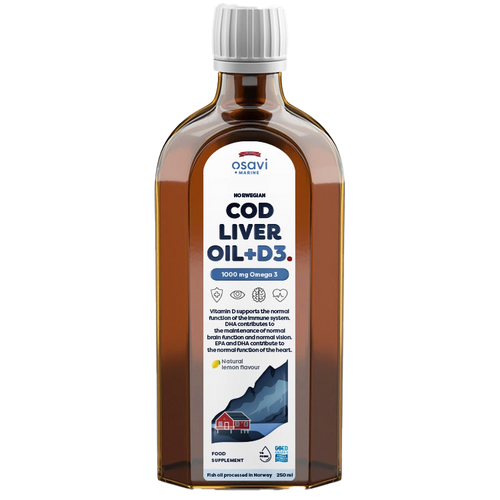 Osavi Norwegian Cod Liver Oil + D3, 1000mg Omega 3 (Lemon) - 250 ml.
