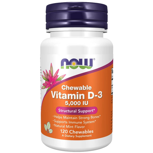 NOW Foods Vitamin D-3 5,000 IU 120 Mint Flavour Chewables