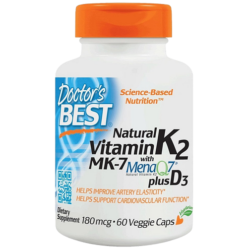 Doctor's Best Natural Vitamin K2 MK7 with MenaQ7 plus D3, 180mcg - 60 vcaps