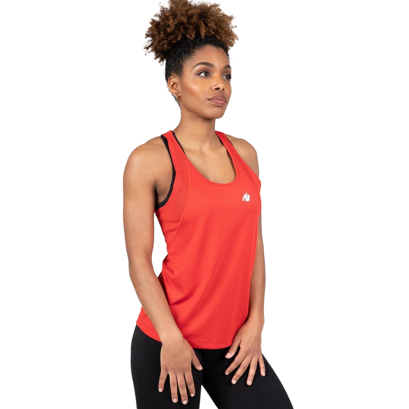 • Introducing the Gorilla Wear Seattle Tank Top in Red, your new favorite workout essential! This tank top is expertly crafted from lightweight breathable polyester, ensuring you stay cool and comfortable during your most intense workouts. The innovative mesh areas provide maximum ventilation, allowing free airflow and reducing sweat during those hot training sessions.