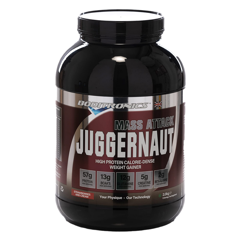 • Mass Attack Juggernaut Strawberries & Cream 2Kg is a premier sports nutrition powder tailored for dedicated athletes who strive to amplify their strength and muscle mass. This expertly formulated supplement provides your body with the essential calories and nutrients necessary for peak performance, making it an indispensable addition to your fitness regimen.