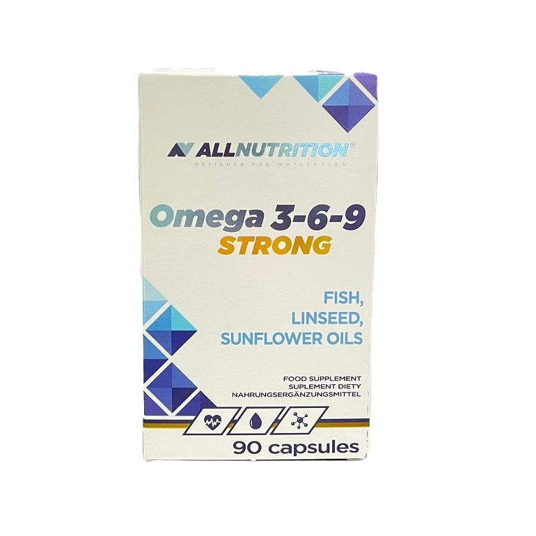Allnutrition Omega 3-6-9 Strong is a premium dietary supplement formulated to provide a comprehensive source of Omega fatty acids. This unique blend of fish oil and plant oils from linseed and sunflower seeds delivers a rich spectrum of omega 3, 6, and 9 fatty acids, essential for maintaining optimal health. By incorporating this supplement into your daily routine, you can harness the benefits for heart health, cognitive function, and skin vitality.