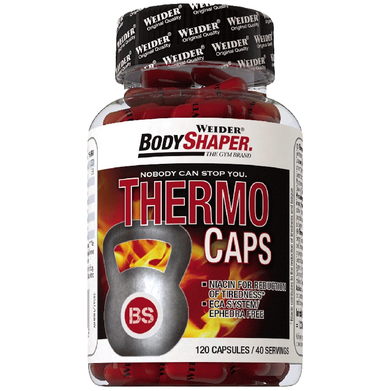 Weider Thermo Caps - 120 caps is a scientifically crafted dietary supplement designed to empower your weight management journey. This potent formula harnesses the power of thermogenic ingredients that not only aid in fat burning but also assist in appetite control and anxiety management, making it an excellent addition to any diet protocol.